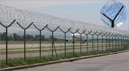機場護(hù)欄網在行業中又稱作“Y型安全防禦護網”,其組成是由V型支架立(lì)拄,加強型(xíng)焊接片網,安全防盜連接件和熱鍍鋅刀(dāo)片(piàn)刺籠組成,是強度和安全防禦性級別很高的護欄網產(chǎn)品。
