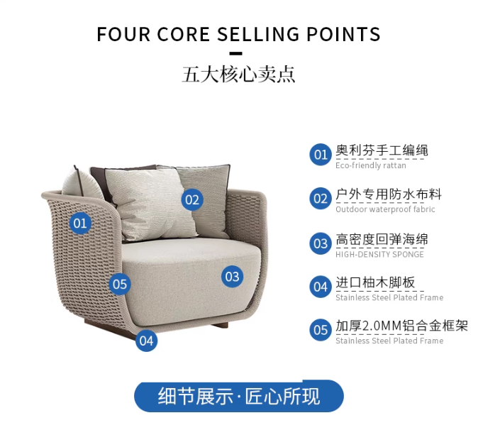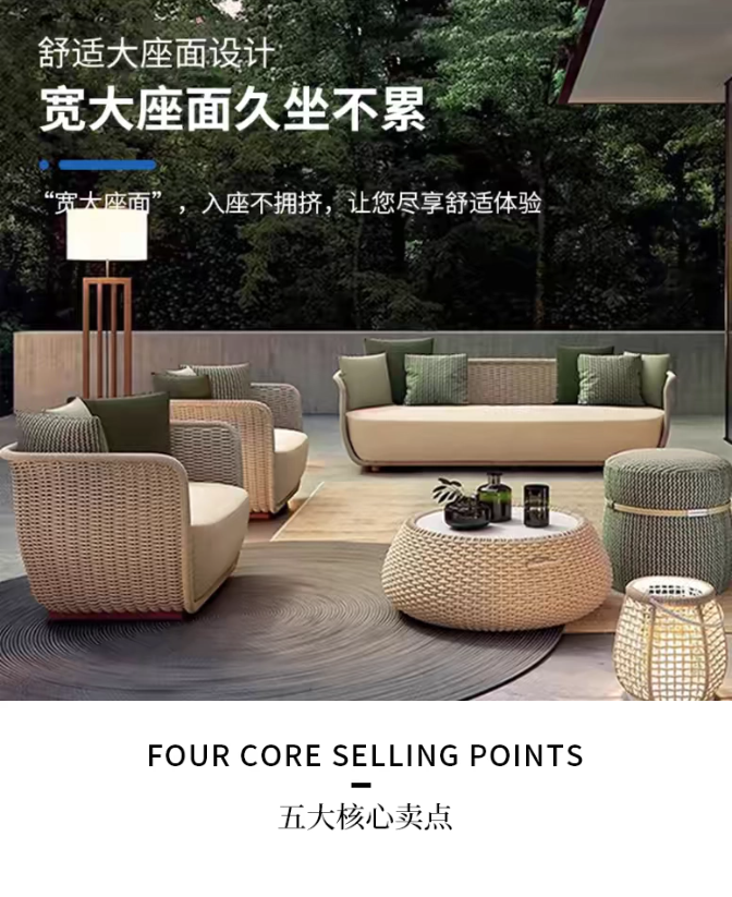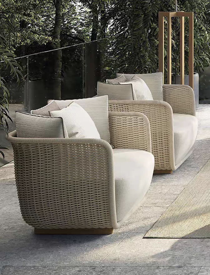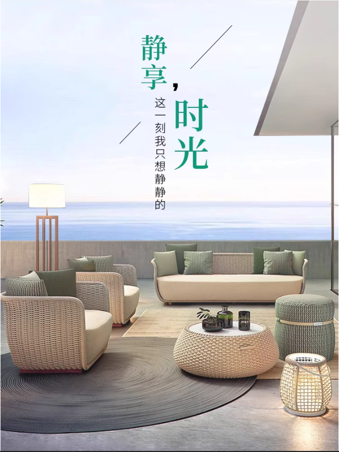戶外休(xiū)閑(xián)藤椅庭院露台藤編沙發(fā)茶幾簡約別墅花園防水防曬家具