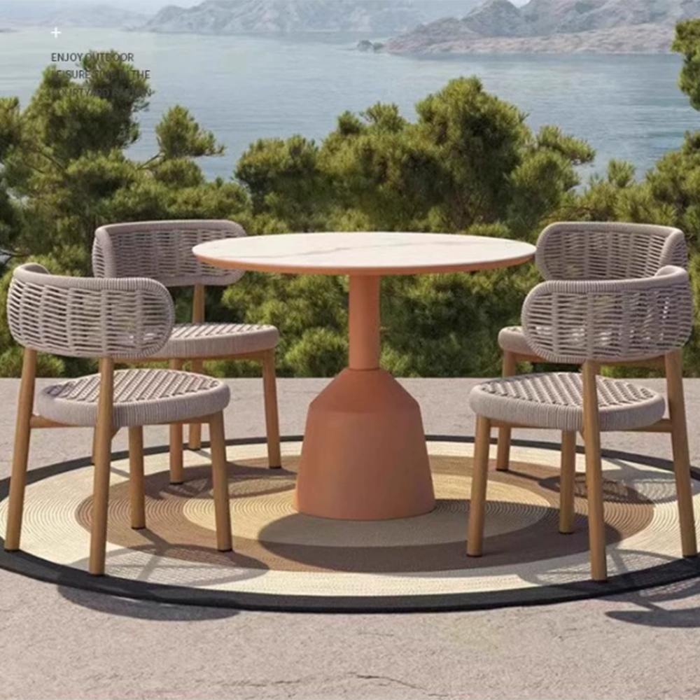 戶外桌椅組合室(shì)外庭院花(huā)園藤編休閑家具(jù)別(bié)墅露台防(fáng)水防曬餐桌