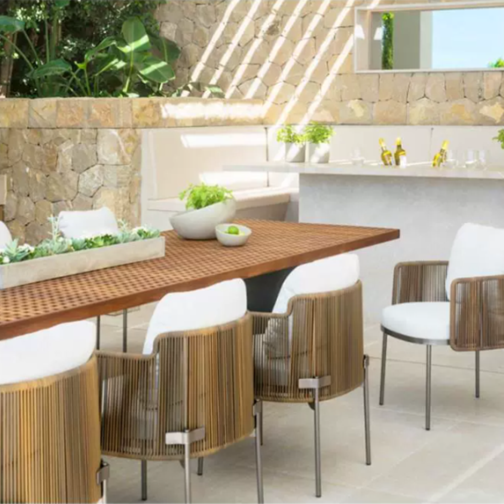 藤編露台圓桌防曬戶外家具庭院花園長(zhǎng)桌桌椅柚木北歐休閑組合防水