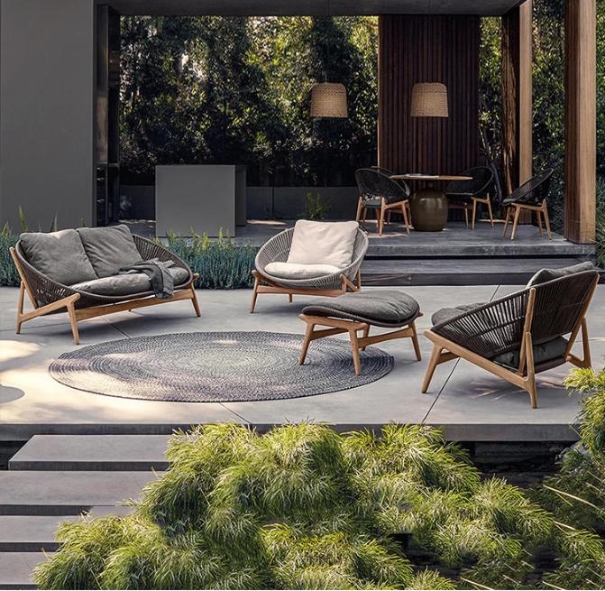 木家具庭院室(shì)外露天休閑(xián)戶外防水實花園別墅組合柚木沙發民宿防腐