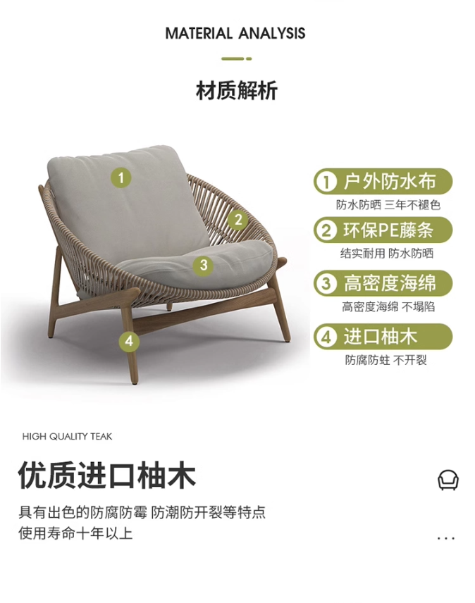 戶外庭院花(huā)園藤編沙發(fā)組合別墅露(lù)陽台(tái)單人(rén)休(xiū)閑躺椅設計師室外家具(jù)