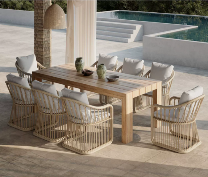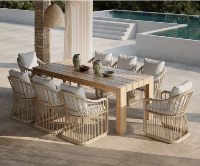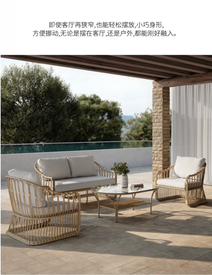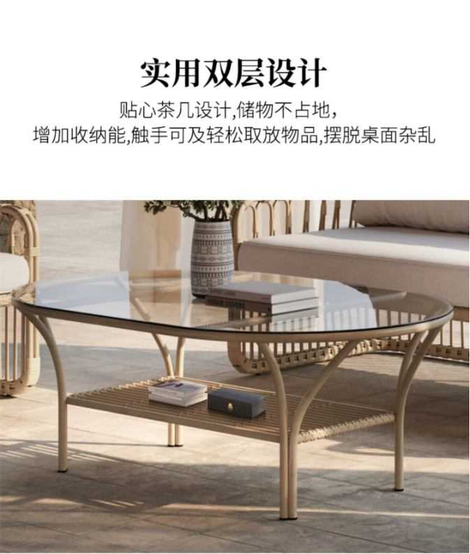 高端戶外實木桌椅組合別墅庭院花園(yuán)休閑家具露台(tái)防雨防曬藤編沙發
