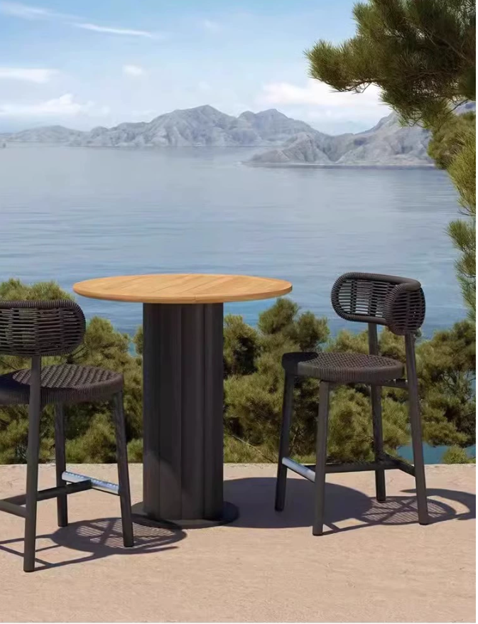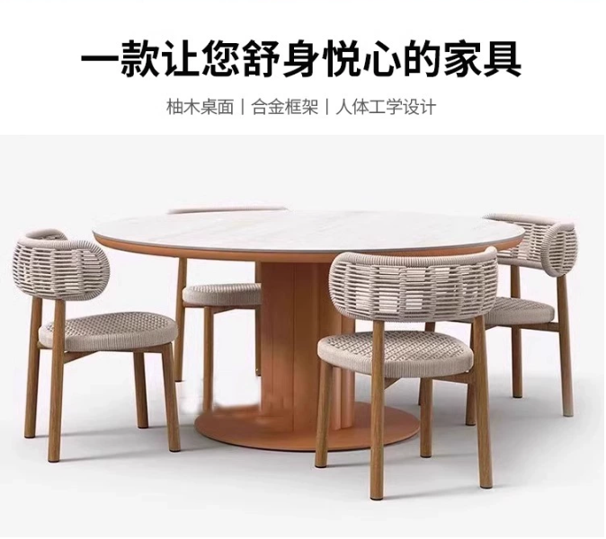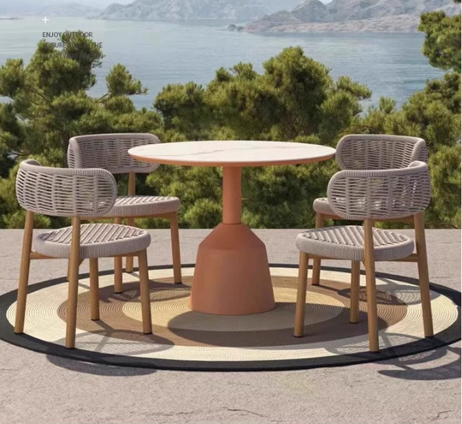 戶外桌(zhuō)椅組合室外庭院花(huā)園藤編休閑家具別墅露台防水防曬餐桌